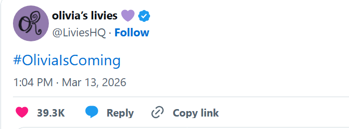 Sáng ngày 13/03, cộng đồng yêu nhạc quốc tế được phen "dậy sóng" khi bộ nhận diện thương hiệu mới của Olivia Rodrigo phủ kín khắp Los Angeles. Sau hơn hai năm kể từ thành công rực rỡ của album GUTS, đây chính là tín hiệu rõ ràng nhất khẳng định sự trở lại của nữ ca sĩ.