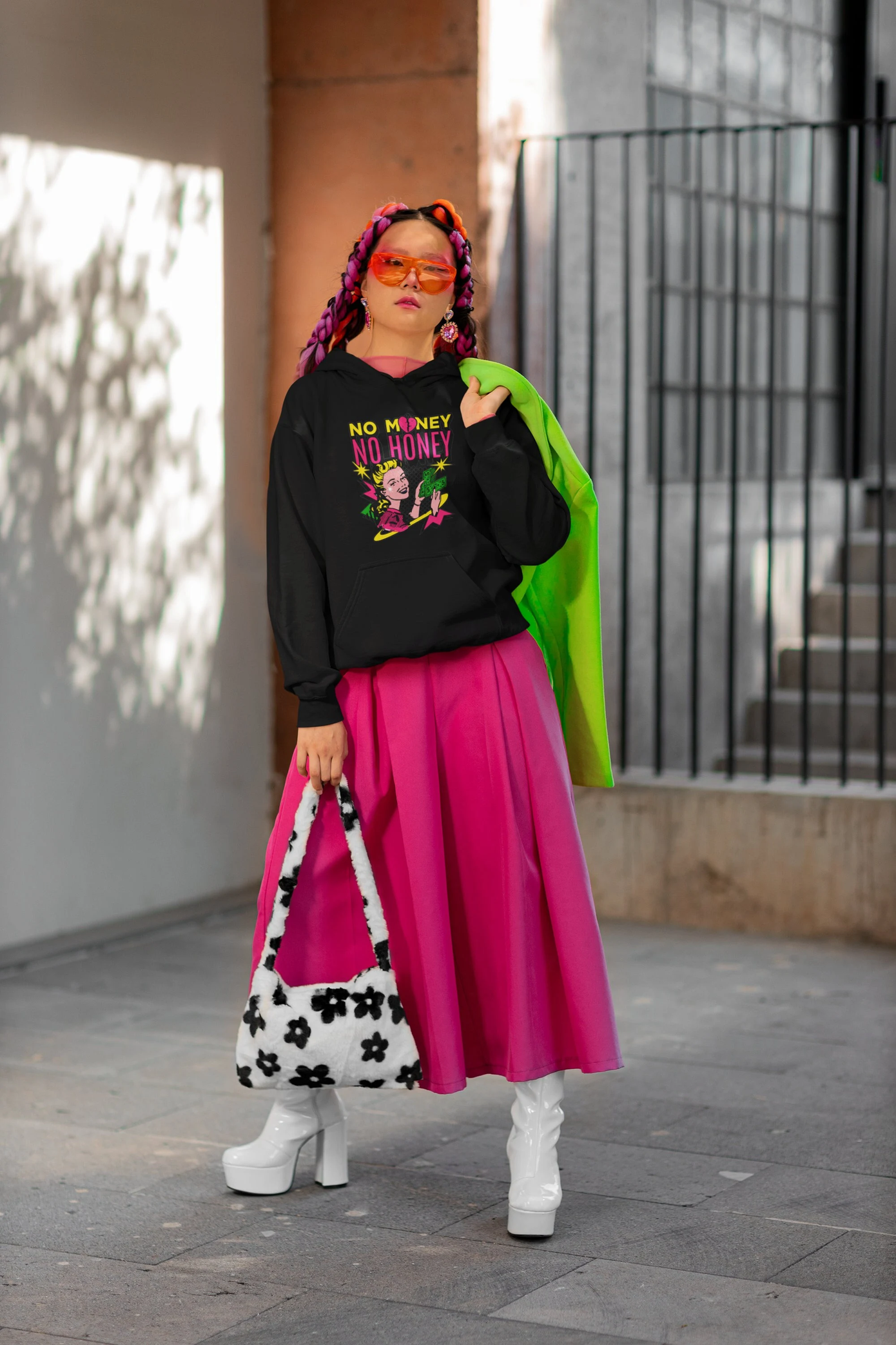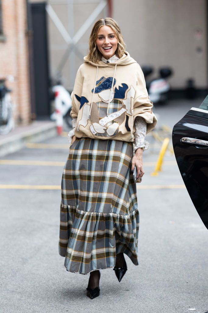 Nếu bạn cảm thấy cách này hơi vượt quá vùng an toàn của mình, hãy chọn một thiết kế áo hoodie đơn giản, đơn sắc để phối cùng váy xòe.