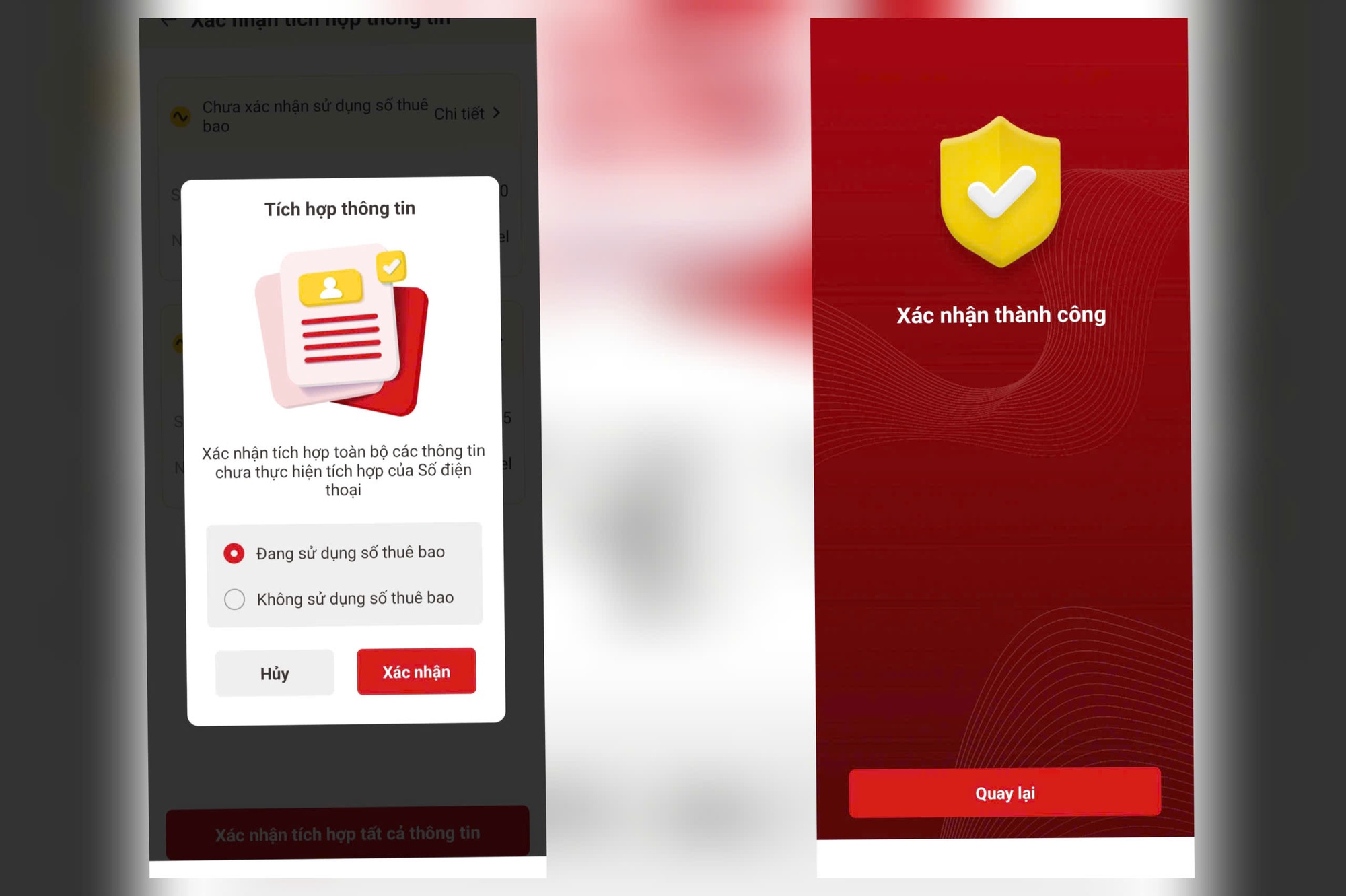 Bước 4: Kiểm tra và xác nhận tích hợp các số điện thoại đang đứng tên hoặc đang sử dụng.