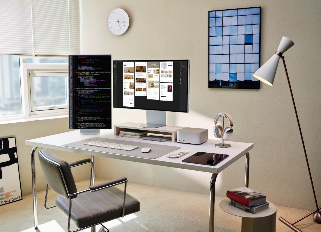 Thông qua chuẩn Thunderbolt, người dùng có thể kết nối nối tiếp (daisy chain) nhiều màn hình 6K chỉ với một sợi cáp. Khi thiết lập chế độ màn hình kép, không gian làm việc sẽ rộng gấp gần 5 lần so với một màn hình 4K đơn lẻ. Màn hình cũng đóng vai trò như một trạm kết nối đa năng cho ổ cứng SSD, eGPU và các thiết bị ngoại vi khác.