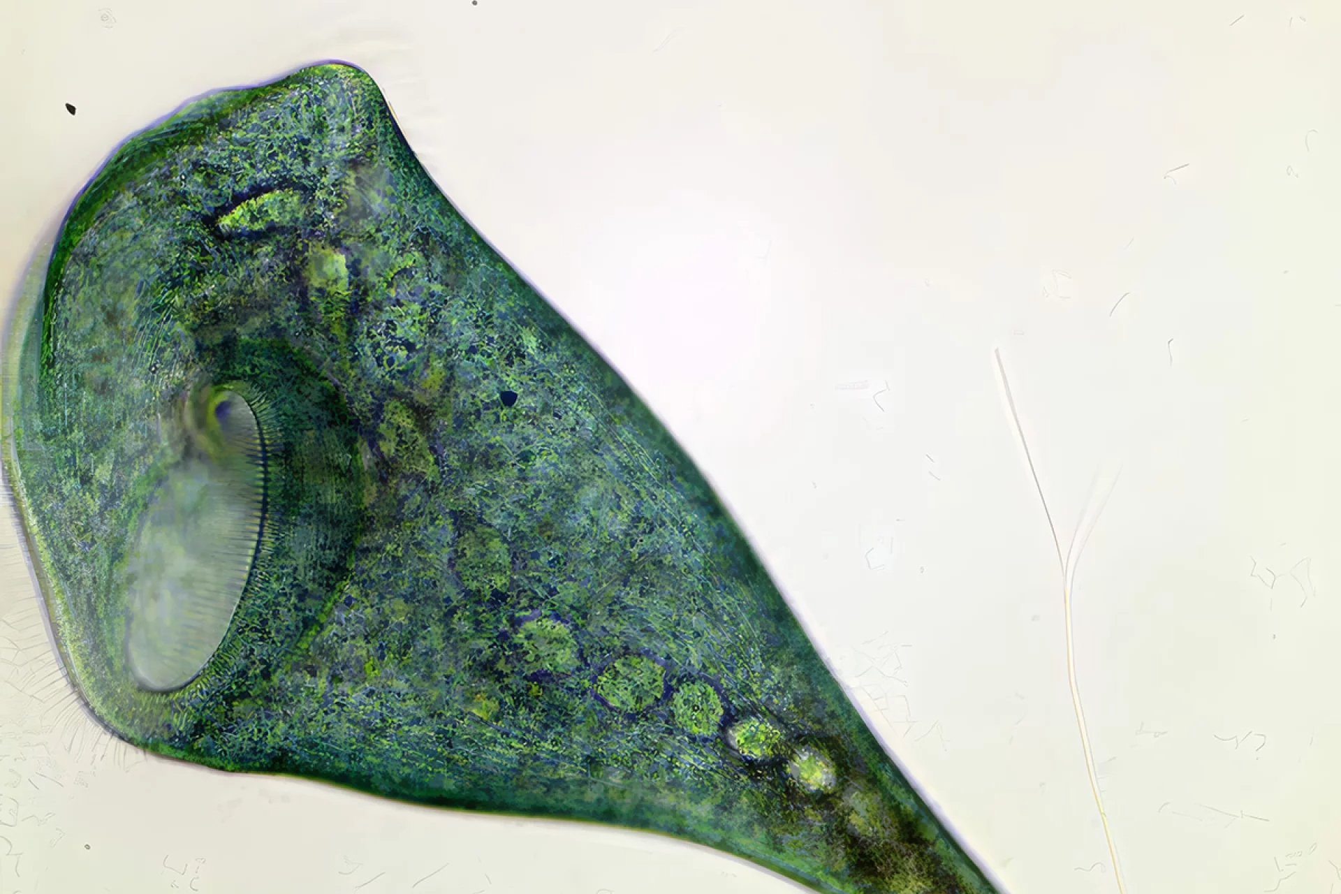 Đối tượng của nghiên cứu là loài động vật nguyên sinh Stentor coeruleus. Loài sinh vật này có hình dáng giống một chiếc kèn với chiều dài cơ thể chỉ khoảng 0,04 inch (tương đương 1 mm).